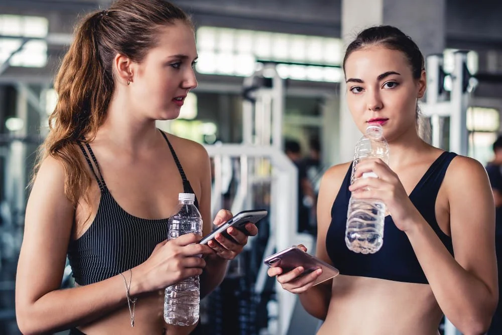 swimmers drinking water from bottles after training