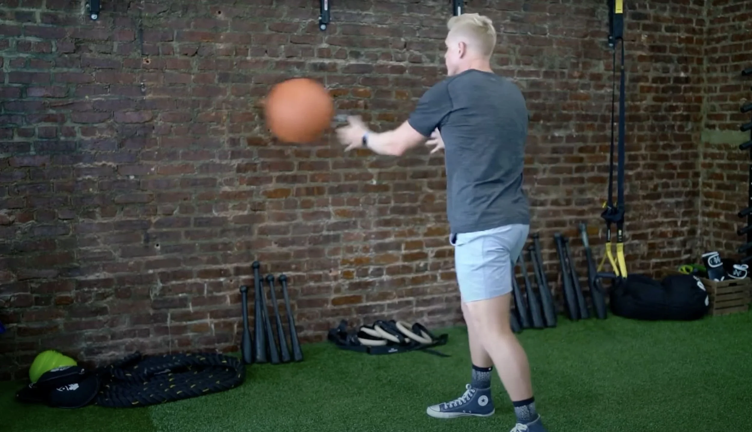 If you don’t have access to a medicine ball, alternatives include kettlebell swings, dumbbell thrusters, resistance band pull-downs, and cable woodchoppers. These movements activate similar muscle groups and patterns.